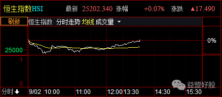 恒生指数翻红,早盘一度跌逾1%。