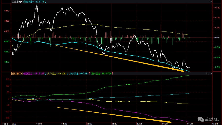 午后北上资金走势平稳,但是内资机构减仓力度较大。