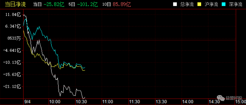 从9点半至今,沪指流出53亿,创业板流出28亿,北上资金没有流出太多,内资机构减仓力度很大。