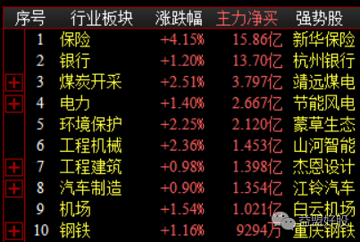 目前资金流入最多的板块,保险和银行虽然资金流入的不多,但是足以把大盘稳住了。
