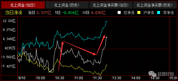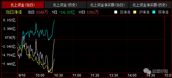 北资继续一波拉升,途中可以看到,今日北资主要是深股通净流入