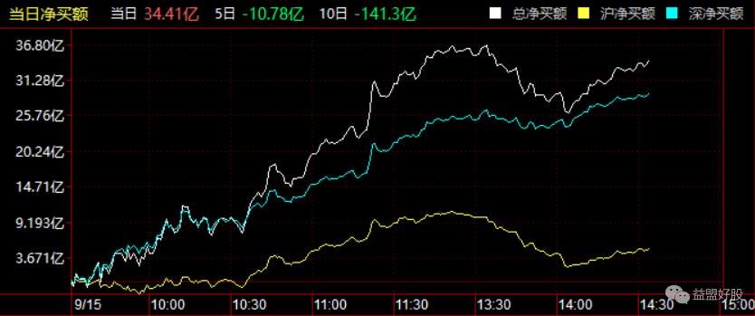 目前北上资金净流入34亿,虽然量不大,但是全天都是在净流入的。