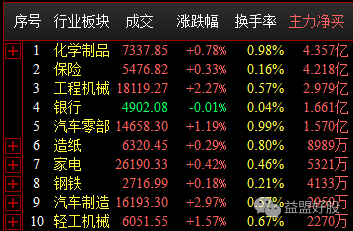 目前主力资金净买入十大板块