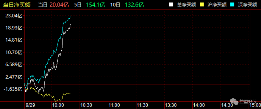 截止目前,北上资金净流入20亿。