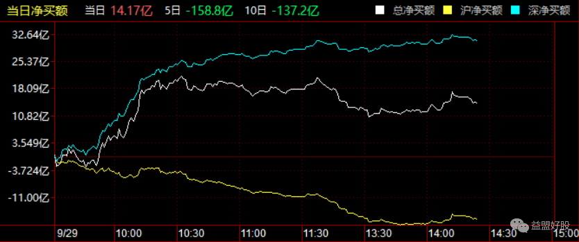 目前北上资金净流入14亿。