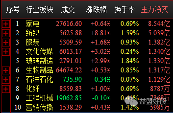 今日资金围猎对象如下,主力净买前十板块