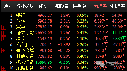 大金融撑起今天指数,拉银行股真不是好事,主力净买前十如下