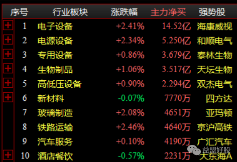 海康威视涨停封板,成交额27亿,海康威视披露三季报显示,高毅资产冯柳管理的高毅邻山1号远望基金新进十大股东,带动资金关注电子设备板块居前。不过就我个人的感受来说,冯柳的股票不太好跟,他本人也透露过,自己有多种打法,有些股票只是买点怕忘记,有些只是买来填仓的。