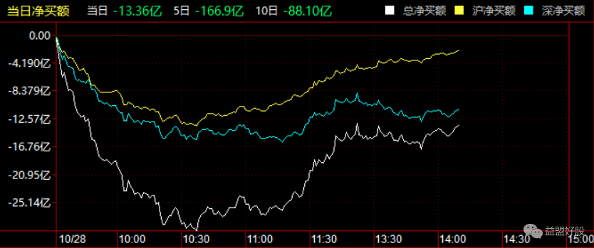 截止目前,北上资金流出13亿,和上午相比,流出幅度缩小。