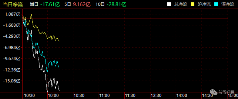 截止目前,北上资金净流出17.61亿,这个时间点、流出量和昨日相当,但是不同的是,昨天是在美股大跌的情况下,而昨晚美股反弹了,所以今天相对昨天是弱一点的。
