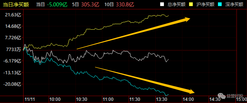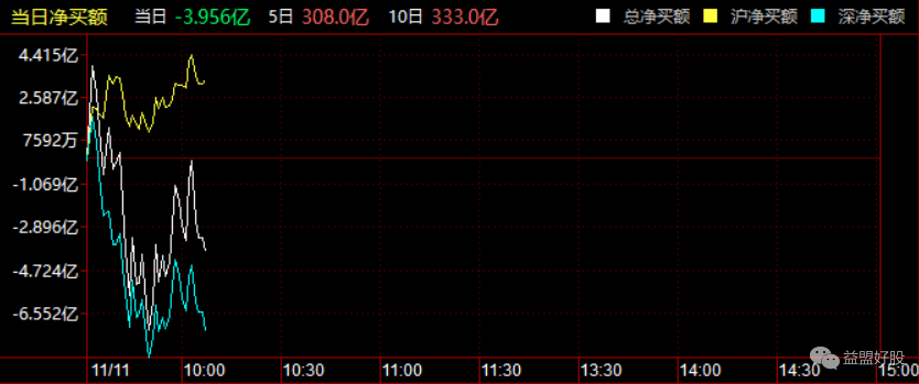 创业板继续下跌,现已跌超3%,主板出现一波明显回落,贵州茅台小幅跳水,比亚迪触及跌停。而早盘活跃板块煤炭、建筑、天然气板块仍较为坚挺。即便上证指数也出现小幅下跌动作,然北向资金中的沪股通资金仍呈持续流入状态,与深股通的流出形成鲜明对比。