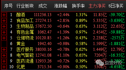 早盘资金净买前十,酿酒、食品、黄金等,资金还是偏向于防御