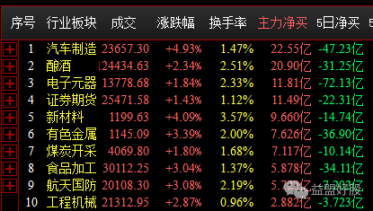 资金今日净买前十,新能源汽车+酿酒+科技成为吸金大户