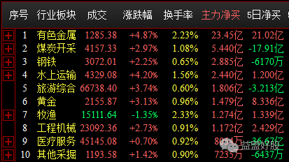 短线资金今天进攻方向未有色、煤炭、钢铁等周期