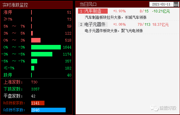 市场情绪今天也不好,目前仅730家上涨,汽车制造入选风口但明显资金出现净卖,相比之下电子元器件净买18.37亿