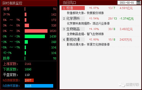 涨跌家数看,今日市场情绪稳中向好,牧渔、化学原料、生物制品、影视动漫入选风口