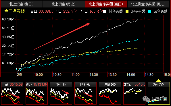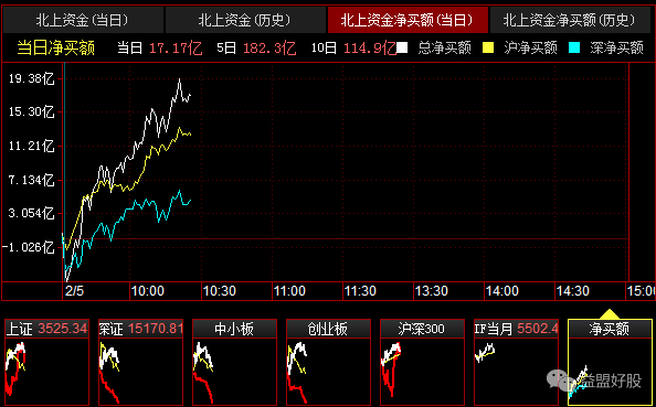 北资净买17亿,目前白线在黄线上方,可见,现在市场涨的主要还是大票